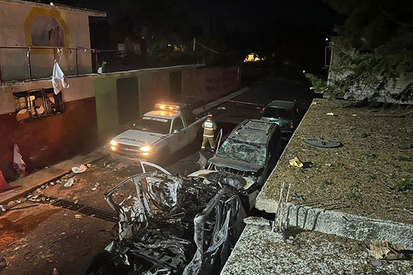 Según los primeras versiones publicadas en redes sociales cerca de las 2:00 horas de este lunes (08:00 GMT), un petardo pirotécnico que impactó en unos cables de energía eléctrica y cayó dentro de la patrulla de la policía municipal que transportaba gran cantidad de material pirotécnico y explotó destrozando el vehículo.
