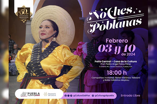 El gobierno presente de Sergio Salomón, a través de la Secretaría de Cultura, retomará durante el 2024 el programa “Noches Poblanas”, el cual consiste en presentaciones de las principales danzas regionales de la entidad, a las que podrá ingresar el público en general de forma gratuita.