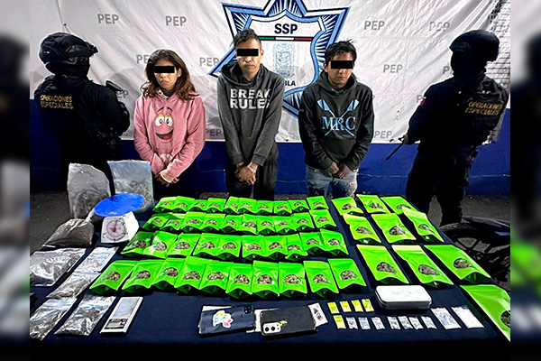 La acción que tuvo lugar en la colonia Guadalupe Hidalgo, ubicada al sur del municipio de Puebla, permitió a las Fuerzas Especiales de Reacción Inmediata (FERI) detener a Arturo N., de 40 años; Jesús N., de 32 años y Xóchitl N., de 27 años.