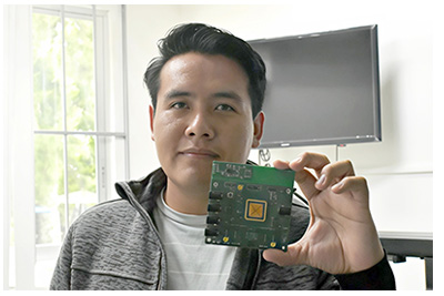 En su laboratorio, el doctor Víctor González ofrece a los estudiantes programas y herramientas para diseño electrónico de talla industrial, lo que facilita su participación en algunos proyectos. Por ejemplo, Alejandro García Equiterio estudió la Licenciatura en Electrónica y su tesis consistió en el desarrollo de un circuito integrado para condicionar señales con aplicaciones biomédicas, logrando un diseño desde el nivel dispositivo, que posteriormente se fabricó en Taiwan. Actualmente cursa el posgrado en Ingeniería Electrónica de la FCE y sigue bajo la tutela del doctor Víctor González para crear un regulador de voltaje, en colaboración con el Laboratorio Nacional de Aceleradores en Stanford (SLAC).