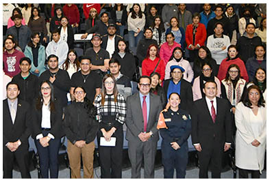 Como parte del ciclo de conferencias, la directora de Programas de Prevención del Delito en la Secretaría de Seguridad Ciudadana, Luz María Ángeles Hoyos, conversó con los jóvenes sobre violencia digital, cuyas consecuencias son daños físicos, económicos, morales, psicológicos y sexuales, los cuales se dan por traición de la confianza y entornos digitales inseguros, entre otros. Presentó además el violentómetro digital, los pasos a seguir en caso de ser víctima de este tipo de violencia y las acciones preventivas.