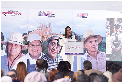 La presidenta municipal Lupita Cuautle entregó su informe trimestral con el que dio oficialmente inicio a su segundo año de gestión en San Andrés Cholula.