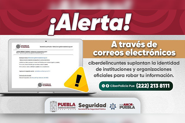 La Secretaría de Seguridad Pública (SSP) alerta a la ciudadanía sobre correos electrónicos que suplantan la identidad de instituciones oficiales y proveedores de servicios digitales, con el propósito de obtener información personal.