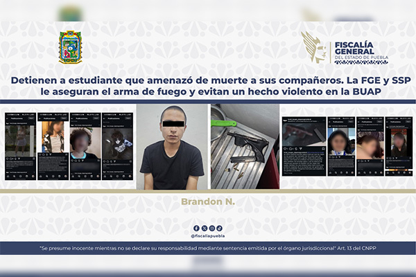 Detienen a estudiante que amenazó de muerte a sus compañeros en la BUAP